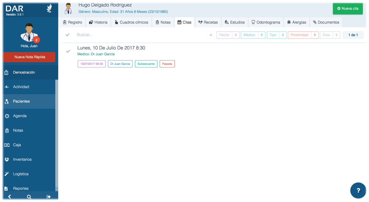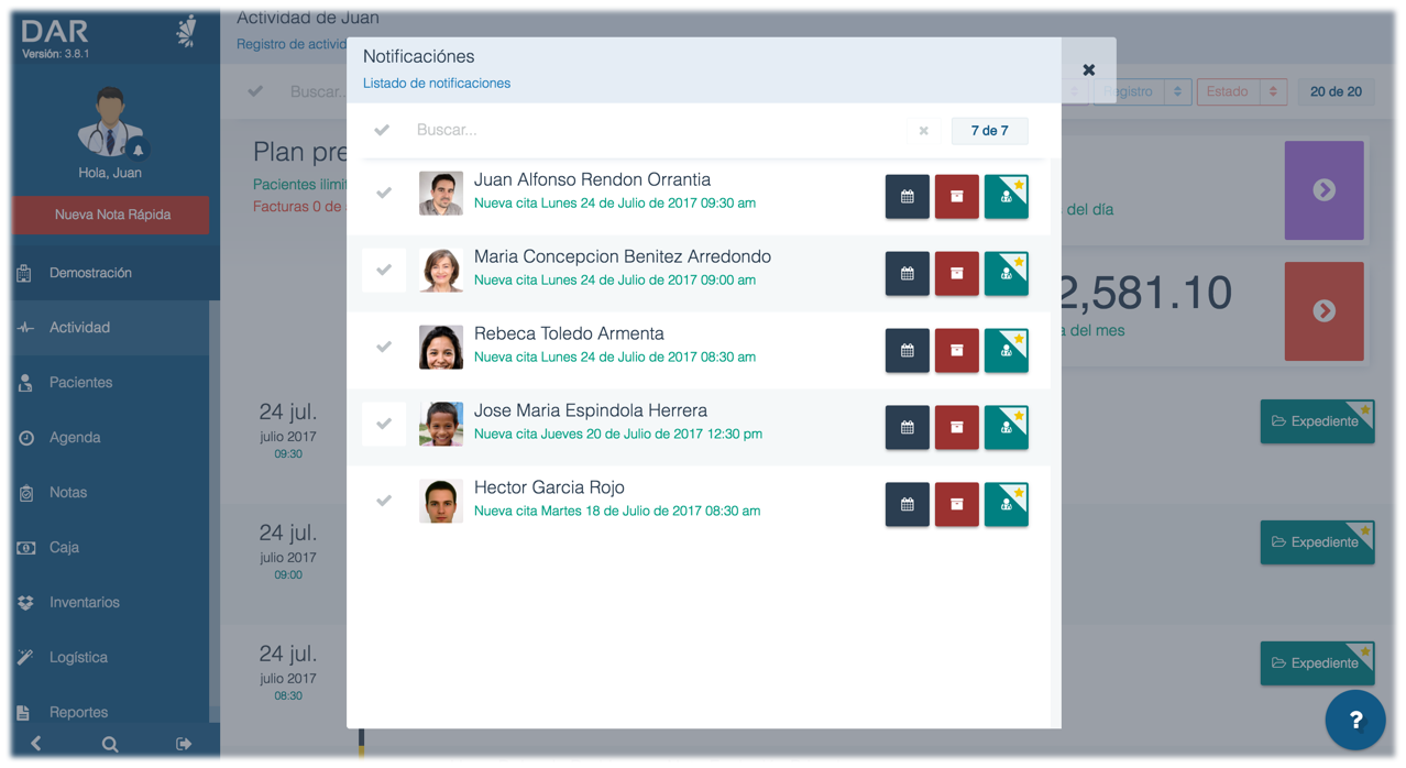 Cada que se inicie una cita el médico será informado de esta, así como cuando el paciente llega a la clínica.