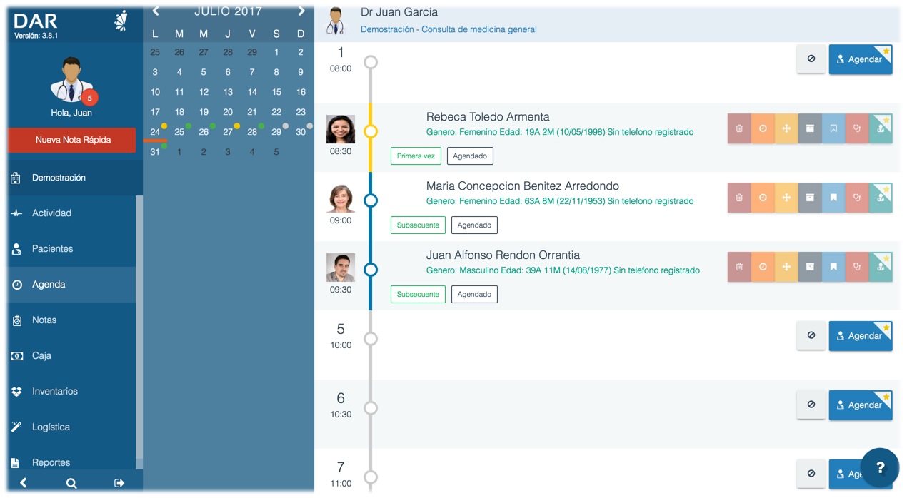Módulo de citas, para el control de todas las agendas de la clínica, ideal para recepción o call centers.